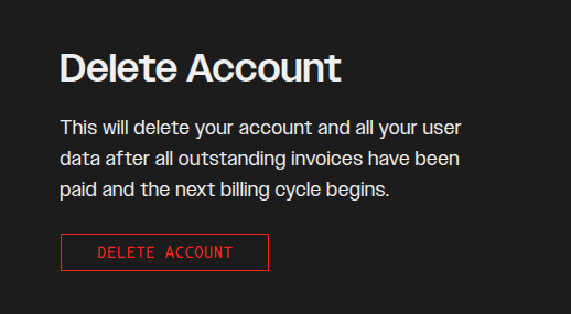 You can also delete you account by clicking the “DELETE ACCOUNT” button at the bottom of your account page